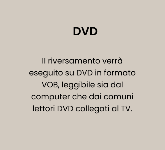 Digitalizzali in file .avi con attrezzatura professionale per preservarne la qualità e salvarli per sempre.