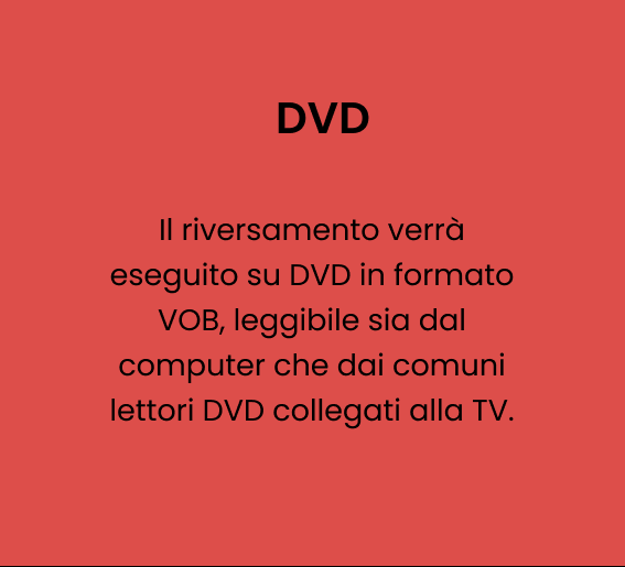 Digitalizzali in file .avi con attrezzatura professionale per preservarne la qualità e salvarli per sempre.